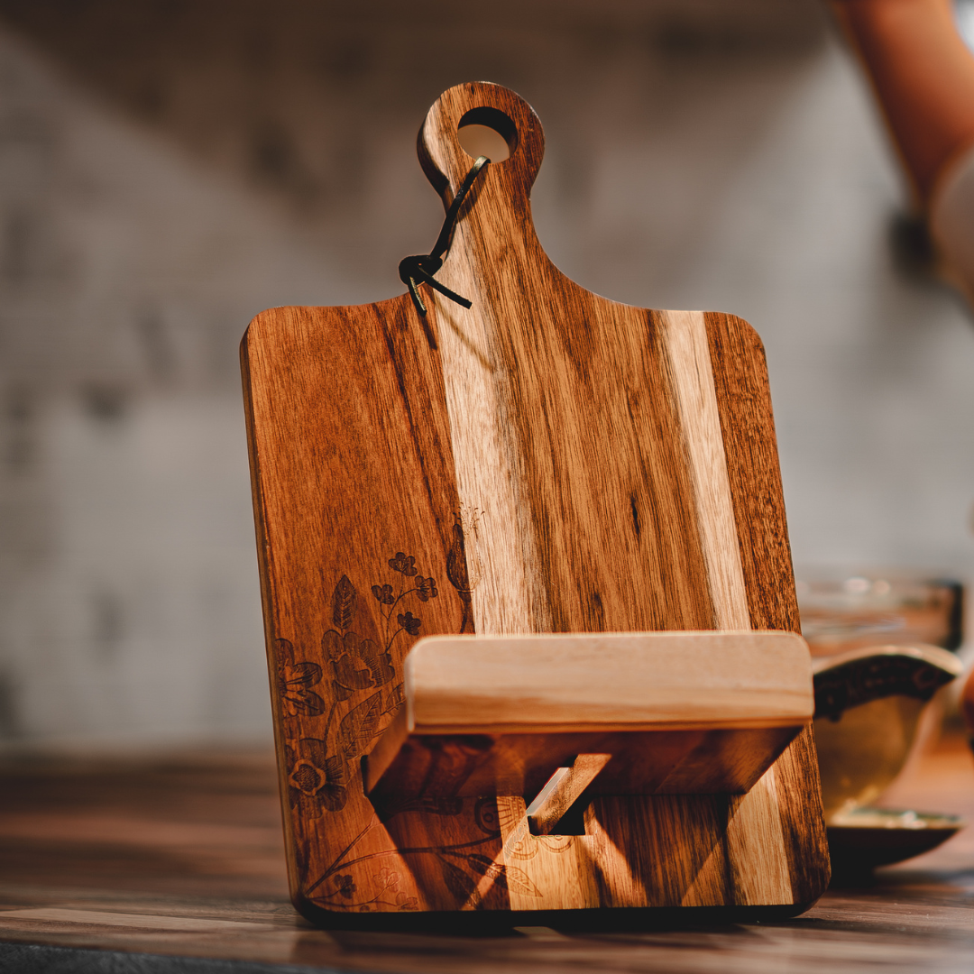 The Koselig Cookbook Stand is a multifunctional, Scandinavian-inspired book holder made from FSC-certified acacia wood. It keeps your cookbooks, recipe books, or tablets upright while you cook, adding both function and warmth to your kitchen.